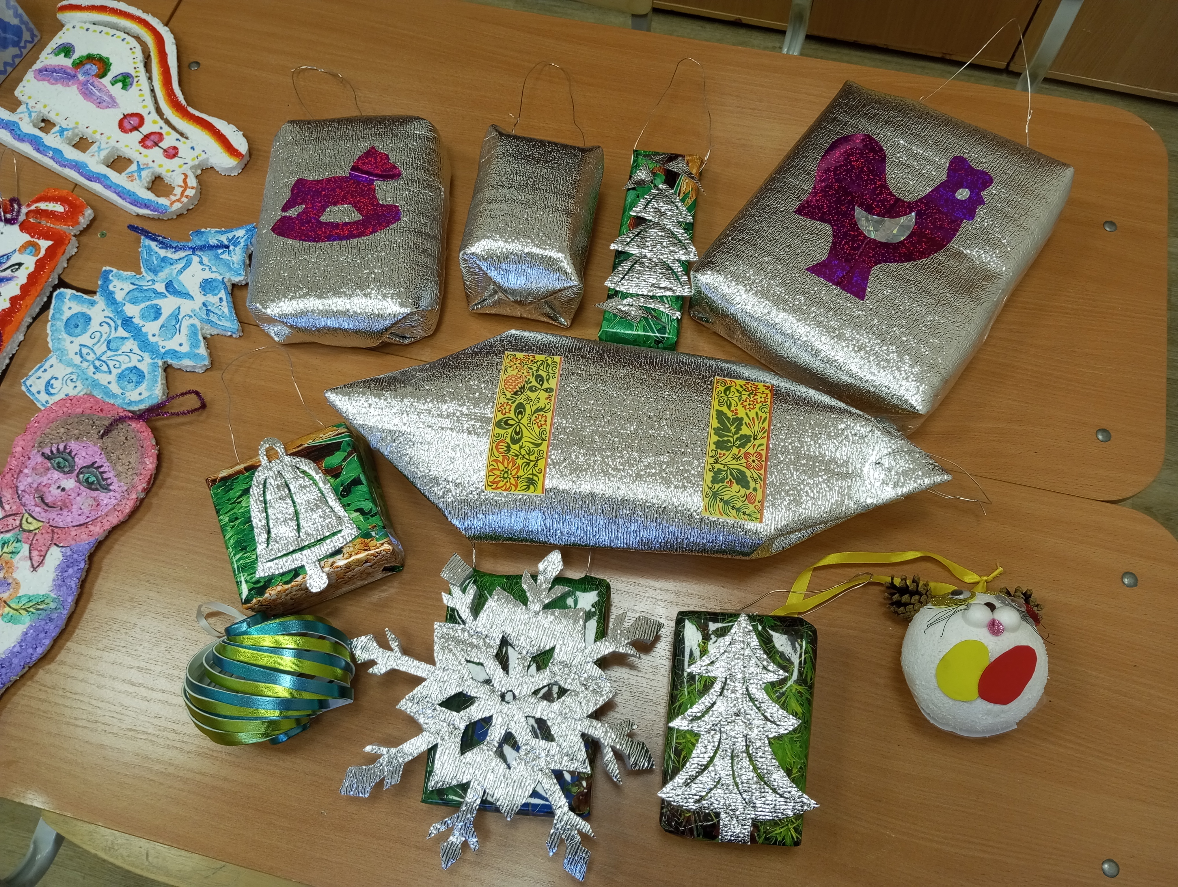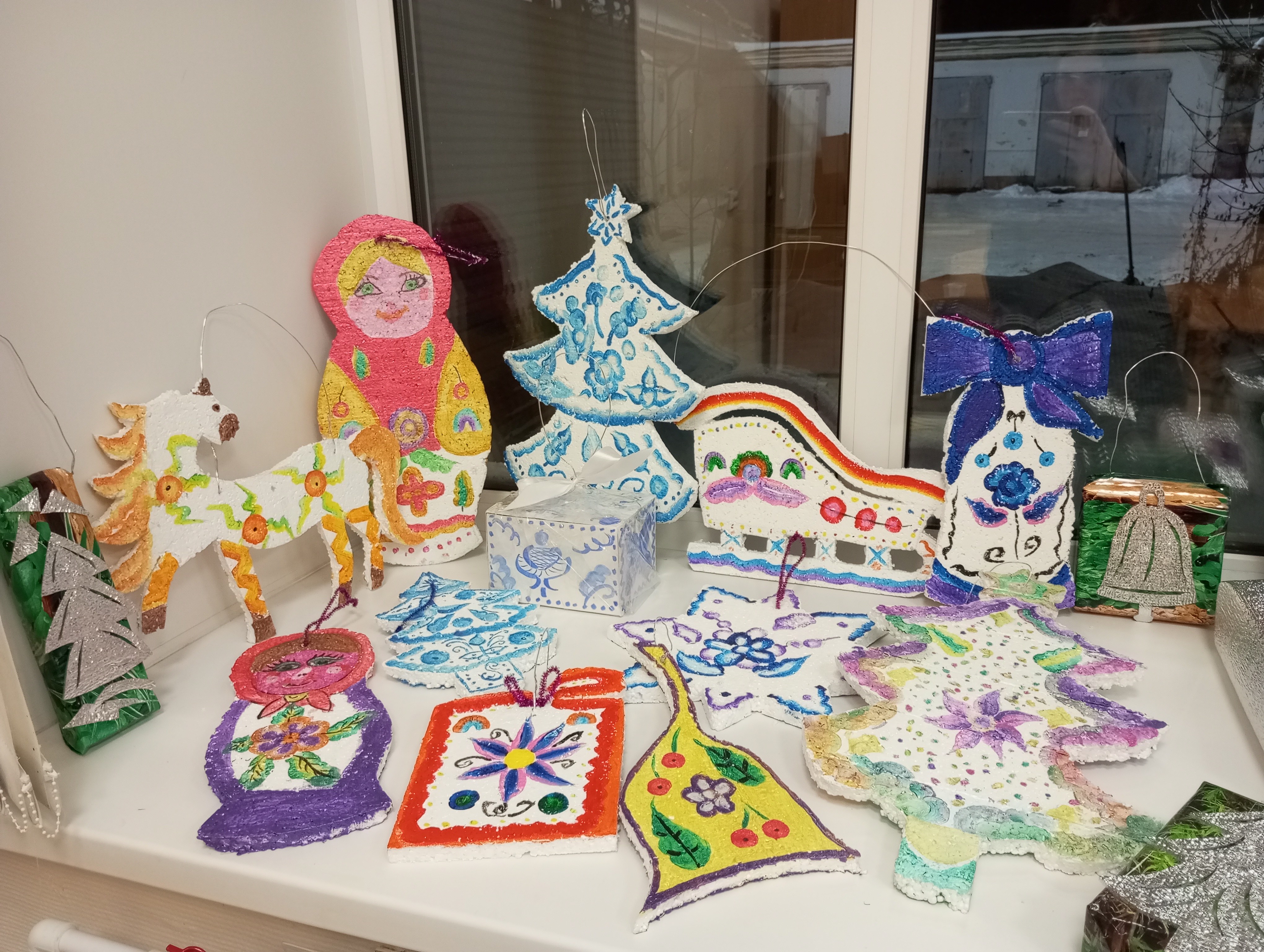 Учащиеся выполнили роспись акриловыми красками, каждый участник выбрал свою роспись по душе: «Гжель», «Урало-сибирская роспись». Игрушки на елочку получились яркими, красочными, волшебными, ведь они были выполнены с душой и теплом!