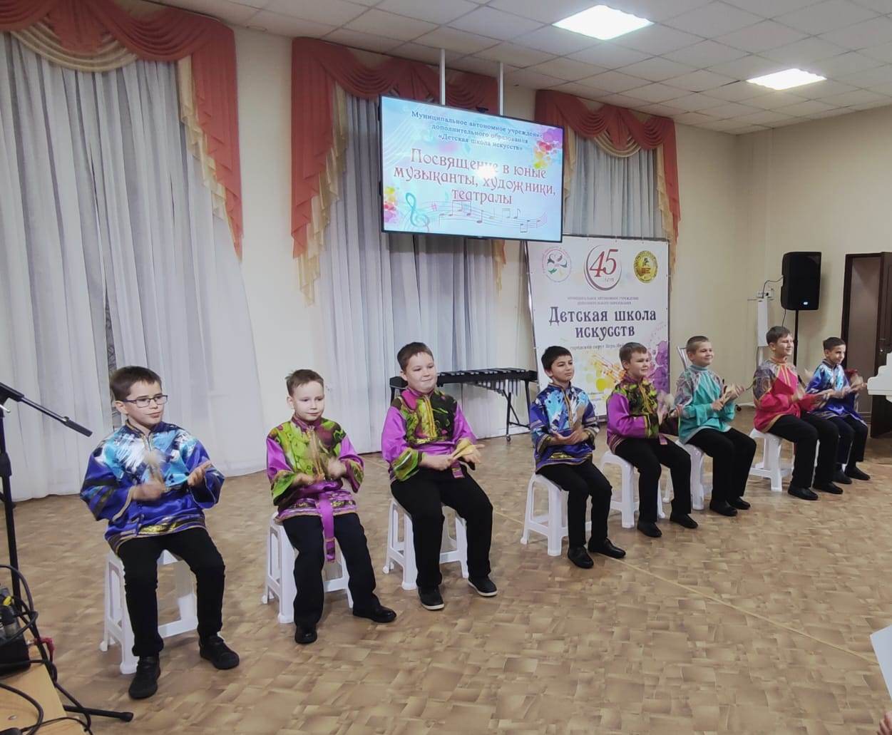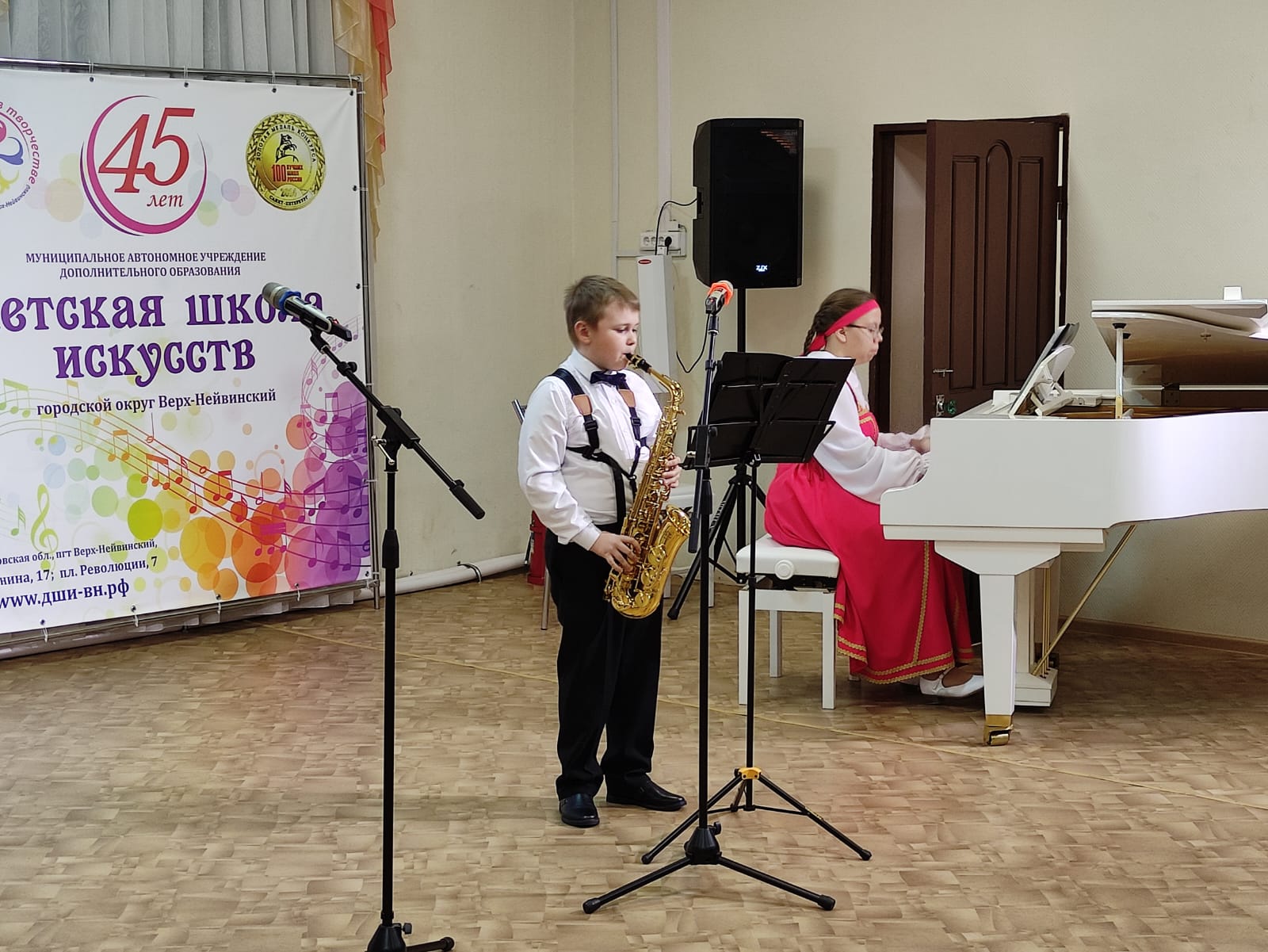 Весело и задорно праздник начался с выступления ансамбля народных инструментов «Задоринки» (руководитель Чуркин А.Ф.), который исполнил русскую народную песню «Зашумела во бору сосенка». Учащиеся музыкального отделения подготовили разнообразные номера. Соков Степан (преподаватель Рябова К.М., концертмейстер Федулова И.Н.) ритмично исполнил на ксилофоне «Детский танец». Джазовая композиция «Сыграем Буги-Вуги» прозвучала в исполнении инструментального трио: фортепианный дуэт Завьялов Иван и Силантьев Максим (преподаватель Малова О.В.) соло на трубе Попов В.В. Скрипичные мелодии исполнили учащиеся преподавателя Сагировой Э.С. и концертмейстера Филякиной И.Ю.: Оскерова Мария - «Цирковые собачки», Андреева Светлана - «Санта Лючия». Самофеев Евгений (преподаватель Чуркин А.Ф.) эмоционально исполнил «Яблочко». Нежно и ласково звучала волшебная флейта, в исполнении Гайдуновой Анастасии (концертмейстер Завьялов Иван) прозвучал «Вальс-мюзетт». Завораживающе прозвучал саксофон. Поляков Егор (концертмейстер Щукина Ульяна) исполнил «Листок из альбома».