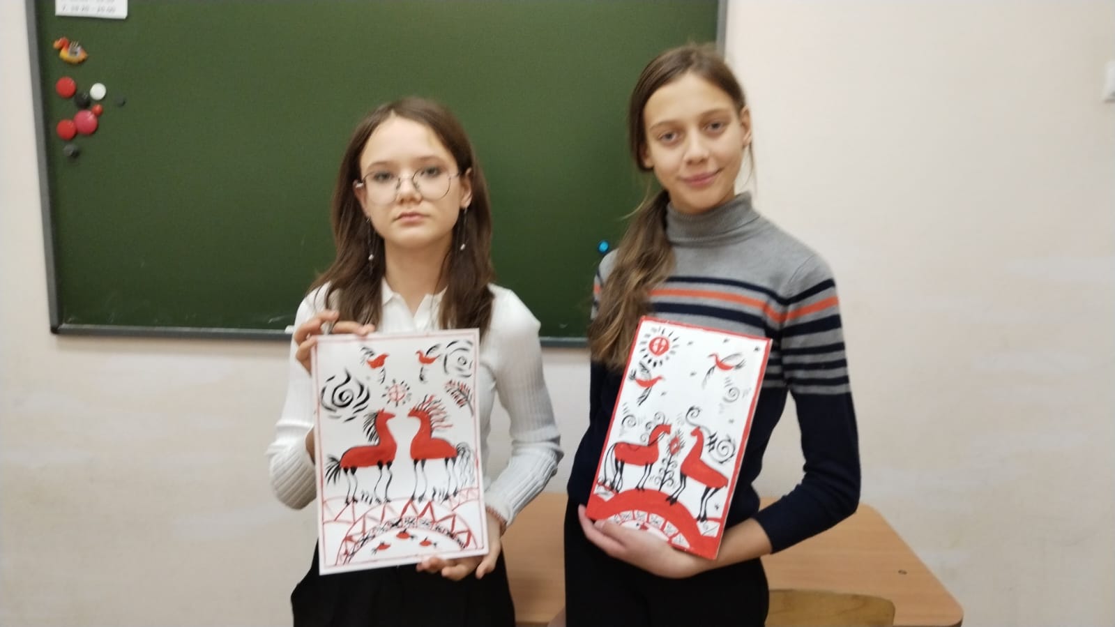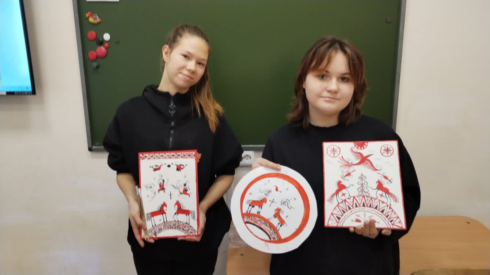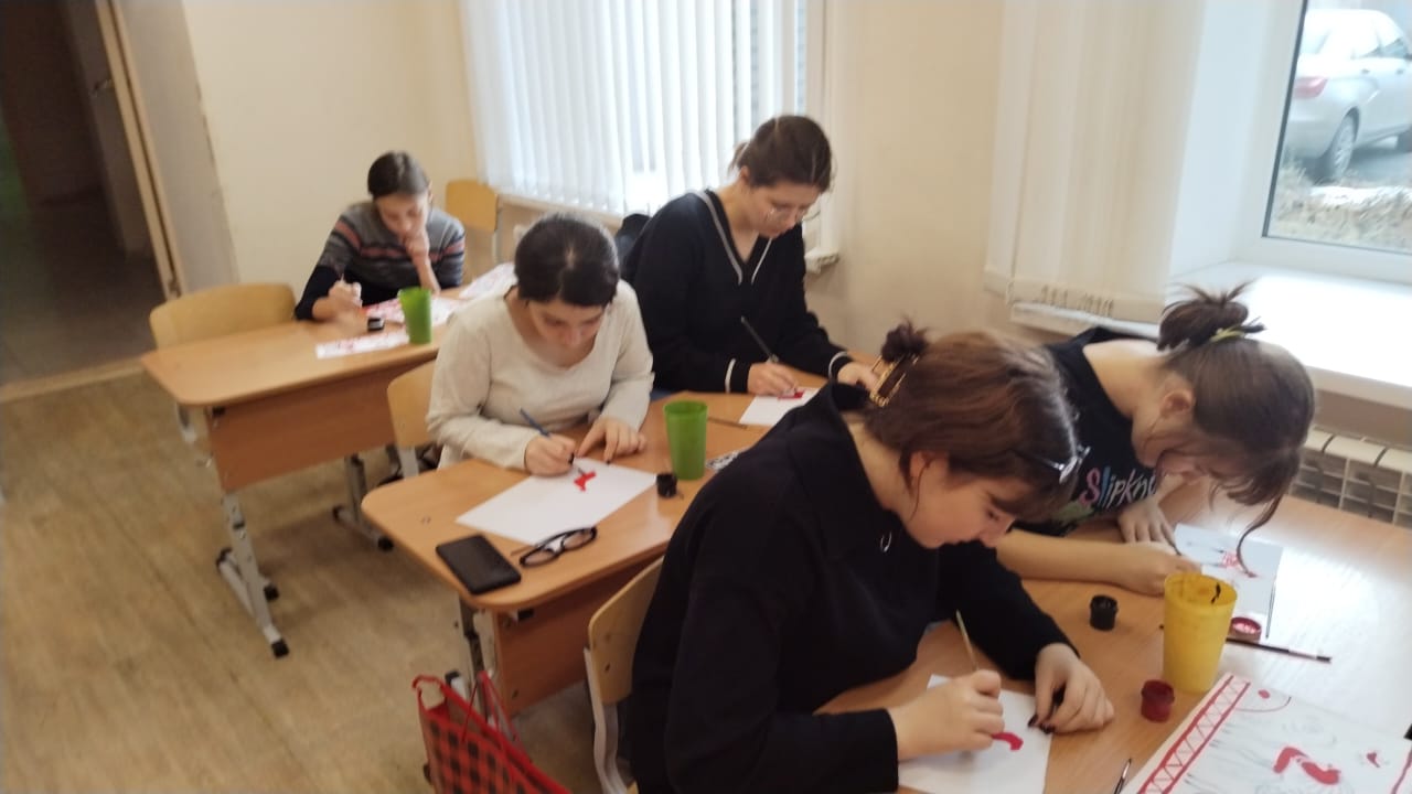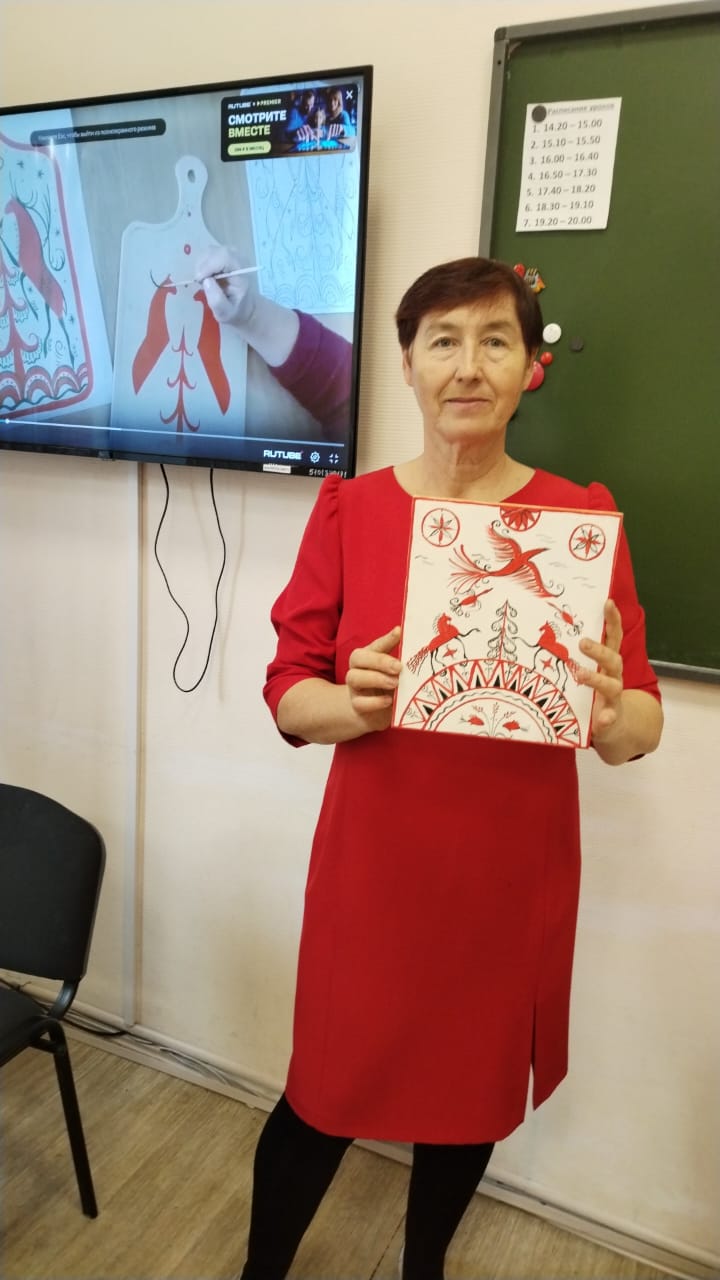 Учащиеся познакомились с историей происхождения, промысла XIX века в селе Палащелье на реке Мезень. После знакомства с символикой и семантикой промысла учащиеся выполнили упражнения, а после расписали Мезенской росписью панно, которым дети украсят свой дом.