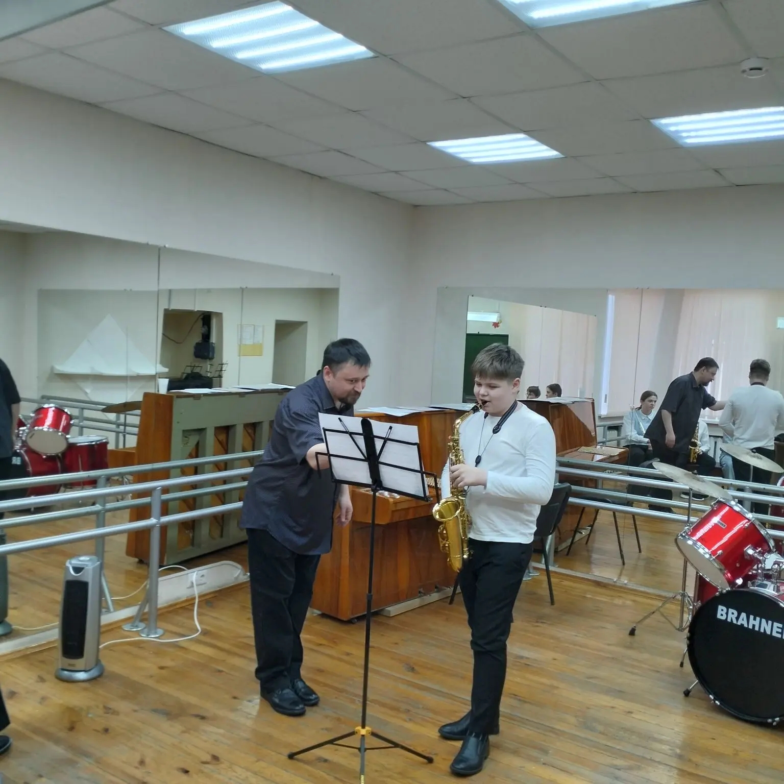 - «Особенности исполнения штрихов на деревянных духовых инструментах» провел Владимир Викторович Попов. В ходе урока учащиеся по классу духовых инструментов продемонстрировали свои навыки, исполнив произведения из текущего репертуара. Юные музыканты показали, как они справляются с различными видами штрихов — от мягкого легато до острого стаккато, стараясь передать характер и настроение каждого музыкального номера. Это мероприятие стало не только отчетом о проделанной работе, но и настоящим погружением в тонкости исполнительского мастерства для всех присутствующих.