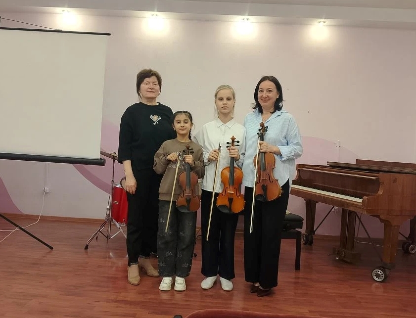 - «Основы звукоизвлечения на скрипке» - с учащимися по классу скрипки. Преподаватель Эльвира Садрисламовна Сагирова и концертмейстер Ирина Юрьевна Филякина рассказали о характере исполняемых произведений, о сложностях и проблемах игры в ансамбле. Желающие гости могли прикоснуться к инструменту и попробовать извлечь свой первый скрипичный звук!