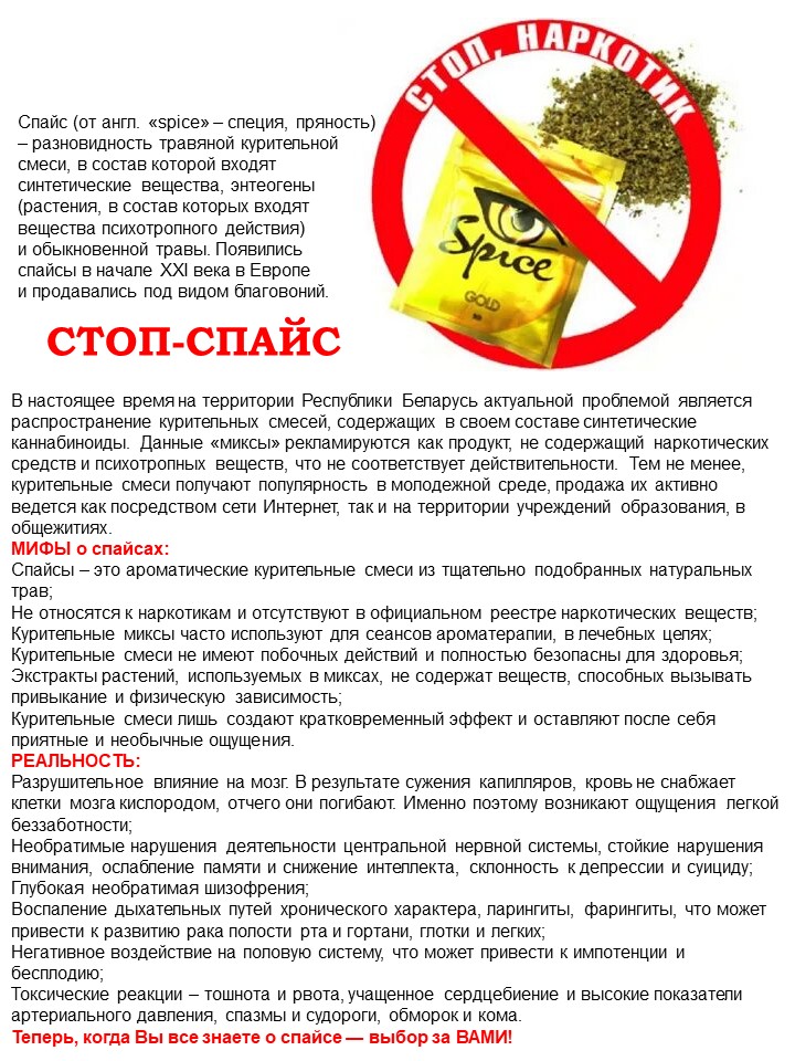 - Памятка "Стоп-спайс": мифы и реальность